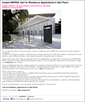 | What contributors are getting from trangcacuocbongda2026.eu.com…. We were very pleased with the previous calls for applications of our residency program, Impakt WORKS. Amongst the applicants of our last call in February (2012), we did a little survey on how they had learned of the call. It was Re-Title that most people listed as their source. In other words, good news for both of us! Ilga Minjon Impakt Foundation The Netherlands www.impakt.nl “Re-title is great! We always get in touch with talented artists. Our last artist in residente Cristina Molina got to know us from Re-Title and we have created a wonderful project together.” Alicia Candiani, Founder & Director Proyecto´ace, Buenos Aires, Argentina. www.proyectoace.org | ||||||||