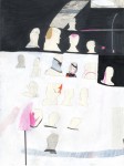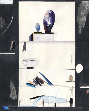 ink, colored pencil, acrylic, collaged paper and graphite on paper