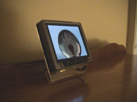 One day is shot over the period of a day using dandelion paperweight as an inverted camera to reflect the change in light and activity witness on street below. Time is both compressed and extended, motion speed up and slowed down. In its duration 15mins, 8 hours of filming is edited into a continuous shot giving the illusion of real time.