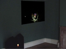 Shot at night in an unfamiliar landscape the camera searches for evidence. Roaming and resting momentarily on objects that emerge out of the darkness visual information begins to define the space. A sound track of cricket song further locates he work as a specific place in time.