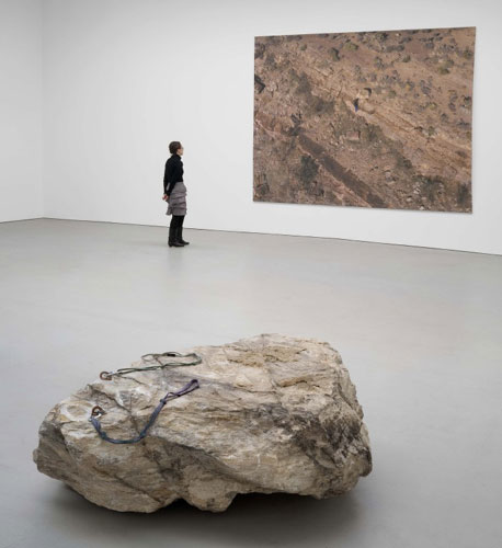 Jetex with solvent archival print, and rock, Rock: 28 x 69 x 54 in. Photo: 156 x 116.52 in