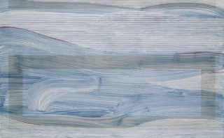 Impetuous, 2003–2004, is an overlay of exuberant brush strokes, undulating stripes and a series of open rectangles that appear to move within and across the canvas. Still No Hero Here, 2003 extends an earlier dialogue inspired in part by the abstract expressionist painter Clifford Still, in which transparent rectangles appear to float across fluid, fissured waves.