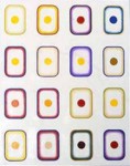 | The paintings I make are both generic and branded. The elements of composition (i.e. stripes, concentric squares or circles) in the works are not unlike paintings by numerous other artists. The brushstrokes are deadpan marks that reveal nothing. They are human, but anyone with a reasonably stable hand could make them. Yet the colors of these paintings have specific meaning. The palette is determined by assigning the letters of my name with colors in a random manner. The paintings literally spell my name in color. These works end up being both exclamations and denials of the self. They are metaphors for our desire to define ourselves as individuals. But they also question the notion of value placed upon the original or unique in modernist history. | |||||||||
