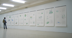2. | 3. – SURVIVAL SYSTEMS – URBAN ACTION CATALOG, 2003 . Watercolor and graphite on arches paper. Dimensions (each): 69 x 42 inches (175 x 107 Cm). Part of a series of large-scale drawings – a fictional catalog of conceptual products for outdoor activities that respond to one’s desire to be close to nature. |