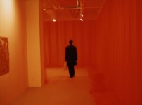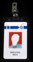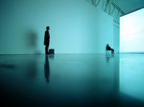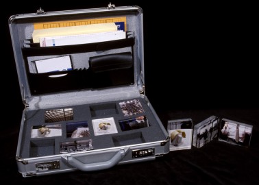 Meticulously housed in the suitcase is Frederick’s recent body of work entitled ‘Corporate Casual.’ Taken from his “other“ life as an employee of a major monetary institution, it consists of surprisingly intimate photographs of the corporate environment made into paperweights. Also represented are various ephemera from Frederick’s own corporation, a nameless entity perhaps best illustrated by its faceless nametags and engraved pens featuring his attractive, familiar, yet ultimately meaningless logo. A quick glance at these elements (both the performance and the series) might tempt one to simplify the project as a straightforward critique on the commodification of art or an easy jab at the lack of identity in the corporate world. These elements are no doubt present but upon closer inspection this project becomes more compelling; Frederick’s undertakings are personal acts of subversion awkwardly positioned between the two worlds that he is dependant upon. This project is a complex blend of wish-fulfillment and self-denial, role playing and deceit; it is a risky endeavor and an insightful look into the relationship of art and business.