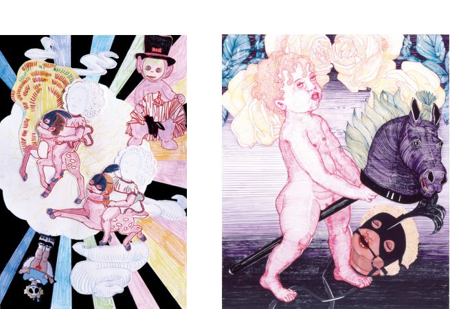 Above Right: Hobbyhorse, 2007 Pigmentmarker + collage on paper, 120 x 100 cms
