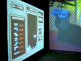 This exhibition, entitled Welcome to my Homepage Artshow, is the first solo show in New York by Arcangel, a founding member of the Beige Programming Ensemble. The show includes a number of new hacked Nintendo game cartridges – the work that Arcangel has become known for – and a number of new works in the medium of video. In the former group are a fully interactive Ipod® programmed for the Nintendo® system and an absurdly slowed down version of Tetris®. In the latter group are Sans Simon, a video of Simon and Garfunkel in which