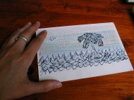 | | In post-card (image1-2), 200-tourist postcards of Buenos Aires were transported to Maastricht, The Netherlands, to be re-printed: a silkscreen white layer slightly covering the photograph created a new surface to be reused. The addresses were 123 Argentineans, some still living in Buenos Aires, some of them gone, who decided to take part in the project. | |