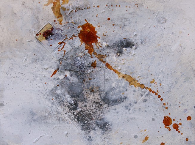 - Untitled – Torrent10 oil, ash, smoked cigars, resin, graphite, enamel and spray paint on studio rags on board 90x120cm