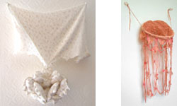alluding to how the body is constructed and how the ‘environment’ affects them. Gravity is a vital tool, it’s pulling weight distorts the objects, sagging and stretching, folds, rips and wrinkles forming. The movement of materials throughout the operation, transforms , without adding or fully removing anything, creating the ‘vessel’. Elements reversing, inside to outside, exploring notions of attraction, repulsion, confession and fantasy.
