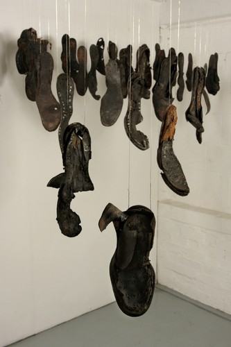 My work explores the narrative behind found or discarded objects. These objects can be shards of wood, pieces of plastic, leather shoes, broken toys. What they have in common is a fragmented history. They were once part of a culture, one which has now discarded them, but they remain part of our environment. There is an analogy between discarded objects and the dislocation that individuals may feel when they are exiled from their place of origin.