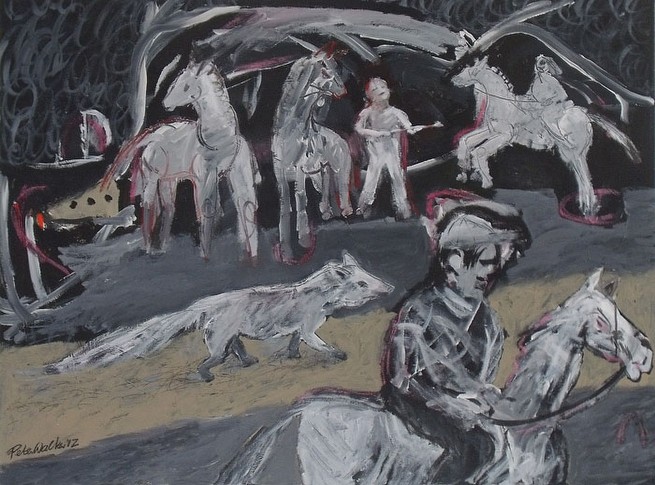 The subject matter isn’t as important as the feeling I am trying to get across with the work. I distort and exaggerate my line work, displace colour to take it out of a realistic mode and push artistic norms as far as possible to evoke an individual style and message. Surprising outcomes are achieved by deliberately making what I call considered mistakes plus random mark making as starting points in some works. This approach often yields an unexpected result later in the work. I try to maintain a primitive vigour and sense of urgency in the work I do.