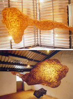 Innocence Temple is a romantic ceremony in memory of childhood; Clothes of Consciousness series are my observations to the status of mankind¡¦s existence. Each piece of the Clothes of Consciousness is as flying as floating souls in the air, cells-like structures, briar-like in tangling, and suffering from linking. The structure of Clothes of Consciousness implies the conception of ¡¥unfinished.¡¦ They could be deconstructed in transforming or in weaving the live intensely.