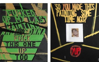 Images from top: Tom Ellis It's Another Fucking Combo, 2006 outdoor installation Tom Ellis I Fucked Up My Last Painting, 2006 acrylic on canvas Tom Ellis So You Made This Painting Some Time Ago, 2006 acrylic on canvas Tom Ellis Good Morning Veronica, 2006 outdoor installation Images: Courtesy of Freight + Volume, New York | Ellis seeks to question the accepted wisdom that only an artist�s �successful� output should make its way from the studio to the gallery. For the exhibition, Ellis will install the site-specific sculpture, Sweet F.A. in the gallery�s front window - an object in which the tension between the aggressive meaning(lessness) of the text and the structure that supports it becomes the content of the work. In the main gallery, the artist will present two different series of deconstructivist paintings. Both bodies of work serve as a journalistic look into the artist�s mind and his take on the art world, and its institutions as a whole. These works, with such titles as Nothing, Fuck All, Nada and I Fucked up my Last Painting are paintings presented in their barest sense, stripped down raw, reduced to a confrontation between an incipient nihilism and human will.