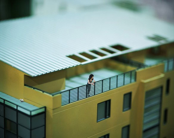 This entire body of work of “Urban Fiction” is playful and fictitious – wandering between reality and fantasy. All the figures in this series are acts of me, playing different characters. This creates another paradox: “I” am real but at the same time “I” am unreal. The figures act out totally imaginative roles and fanciful stories, staged within the maquettes, their plots invented by me and visualized for these spaces. For example, “I” am a white-collar office worker brought to despair by job pressures and spiritual emptiness. Sometimes “I” am a materialistic woman enjoying a life of pleasure and dissipation. Or “I” am a young girl who, in a moment of unrestrained rage, accidentally killed her lover. Together, the resulting pictures compose an episodes, serialized narrative structure for “Urban Fiction”. As a whole, these images represent the state of urban life today.