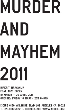 | 1301PE: RIRKRIT TIRAVANIJA - Murder and Mayhem 2011 - 12 Mar 2011 to 30 Apr 2011 Current Exhibition | ||||