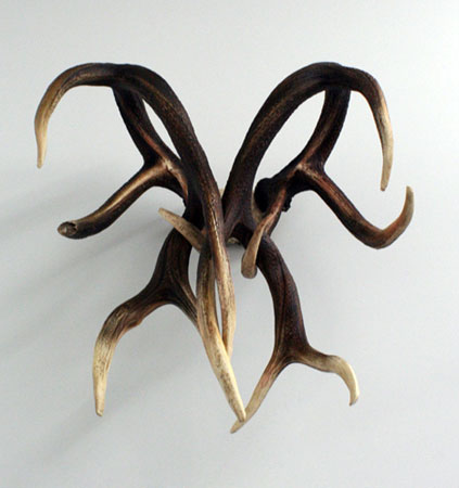 | Michael Joo October 22 � December 5, 2009 October 9, New York�Four years after the artist�s last one person exhibition at The Bohen Foundation in New York, Michael Joo presents new large-scale sculptures and paintings in his fifth solo show at Anton Kern Gallery. Joo continues to investigate the symbolical significance of the physical world by engaging with a wide range of often incongruent materials, mixing high- and low-tech, nature and artifice. Two life-size zebra sculptures dominate the space, one pink, and the other polished bronze, absorbing and reflecting its surroundings. A miniature zebra on an oversized metal tray, a large anemone-shaped painted bronze of antler molds, cast and twisted Elk antlers, several paintings of animal parts, as well as a figure with flight suit and a halo of cameras complete the show. It becomes instantly clear that the artist intervenes with nature�s course of development of form. At first sight, the work reveals itself only slowly. What is being reproduced here? What is depicted? What materials were used? Are the objects casts or molds? What is handcrafted, what is mechanically reproduced or even digitally cloned? What hides under the material surfaces? What does a term like �lifesize� even mean in this context? Joo interrupts the natural process of development in favor of human decision-making. He brings this process to a halt, objectifies it in order to address and understand the realm of the physical. For example, the large pink sculpture is a painted cast bronze of a blanket-mold that was used in the reproduction of another sculpture, namely the polished bronze zebra. The pink surface/exterior obscures what it is casting; the object you cannot see becomes a different, implied object. The work�s identity does not only change, it becomes two at once simultaneously. The artistʼs play with the haptic qualities of the sculptures (relating to the sense of touch, e.g. rubbery vs. hard metal) and his pushing of material against material multiplies this vibrating identity effect. Two strands of reality are addressed at once, complicated by the fact that the �real� sculpture is also present and in front of our eyes. Michael Joo lives and works in New York. He has had solo exhibitions at the Anchorage Museum, Anchorage, Alaska (2008); Leeum, Samsung Museum of Art, Seoul (2006); Asia Society, New York; The Bohen Foundation (both 2005); and MIT List Visual Art Center, Cambridge (2003), Whitney Museum, New York (2000). He represented South Korea at the 49th Venice Biennale (2001). His work was also included in NeoHooDoo: Art of a Forgotten Faith, a group show that traveled from The Menil Collection, Houston, to the Miami Art Museum, Miami, FL and P.S.1 MoMA (2009). For further details on the artist and the work, as well as for more images, please contact Anton Kern Gallery at (t) 212.367.9663, (f) 212.367.8135 or email: [email protected]. | ||||