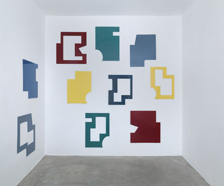 | (please scroll down for the English version) Ayse Erkmen Doppelhaush�lfte 4. September � 23. Oktober 2010 Er�ffnung Freitag, 3. September, 19 � 21 Uhr �ffnungszeiten Di � Sa, 11 � 18 Uhr Ayse Erkmen setzt sich in ihrer Ausstellung Doppelhaush�lfte, wie in vielen vorhergegangenen Projekten, mit der r�umlichen Situation und der architektonischen Begebenheit des Ausstellungsortes auseinander. Ihre Herangehensweise beschreibt die K�nstlerin wie folgt: �Indem ich den Ort sehe, indem ich im Raum bin. Durch Erforschung und den Versuch, einen Raum zu verstehen. Indem ich aus dem Raum, auf und unter den Raum sehe, seine Temperatur sp�re.� Der Titel Doppelhaush�lfte suggeriert einerseits, dass es zwei identische Teile gibt, die zusammengesetzt ein Ganzes bilden und weist andererseits auf eine Teilung dieser beiden H�lften hin, die oft nicht nur r�umliche Dimensionen besitzt. Im Empfangsbereich der Galerie zeigt die K�nstlerin neun Emaille-Skulpturen in leuchtenden Farben, die nebeneinander, zum Teil sehr dicht, an der Wand montiert sind. Die abstrakt geformten Objekte erinnern an fr�here Werke der K�nstlerin, wie die aus Aluminiumverbund ausgeschnittenen farbigen flachen Skulpturen Gem�tliche Ecken, die Ayse Erkmen 2009 anl�sslich des Steirischen Herbst in Graz im �ffentlichen Raum gegen Laternen, Stra�enschilder und B�ume lehnte. Diese Objekte verleiten den Betrachter dazu, in ihnen Konturen bestimmter Gegenst�nde oder bewusst gew�hlte Ausschnitte oder Negativformen zu sehen. W�rde man probieren, die Skulpturen wie Puzzleteile zusammenzuf�gen, w�rden sie jedoch nicht ineinander passen. Im Hauptraum der Galerie wird es stiller. Ein wei�er Tanzboden mit ausgeschnittenen Fl�chen liegt aufgerollt diagonal im Raum. Diese Skulptur mit dem Titel sixtyfive percent, 2010, scheint von ihrer L�nge her gerade noch in den Ausstellungsraum hineinzupassen. Das in das Tanzbodenmaterial geschnittene Geflecht geometrischer Formen gibt den Grundriss der Galerier�ume in der ersten Etage wieder. Ayse Erkmen f�gt die r�umliche Struktur der oberen H�lfte der Galerie in die untere hinein; f�llt eine Haush�lfte mit einer anderen aus. Dabei f�hrt die K�nstlerin das Aufgreifen von Raumpl�nen und -ma�en von Ausstellungsfl�chen weiter, wie sie es beispielsweise in ihren Rauminstallationen Half of, 1999 (Galerie Deux, Tokyo) oder Half of Each, 2005 (Akademie der K�nste, Berlin) getan hat. Die Ausstellung schlie�t im Seitenraum mit dem Film heart and c�rcles, den Ayse Erkmen 2009 f�r Ihre Ausstellung am Centre d�art contemporain d�Ivry � le Cr�dac entwickelte. Nach den ruhigen, unbeweglichen, geometrischen Formen der vorherigen R�ume projiziert die K�nstlerin hier animierte abstrakte farbige Kreise und Herzen, die sich immer wieder �berlappen. Diese Symbole imitieren die verschiedenen Elemente des Logos des Centre d�art contemporain d�Ivry � le Cr�dac, die die K�nstlerin bei ihrer Erkundung �ber die Institution auf deren Website vorgefunden hat. Die international renommierte K�nstlerin Ayse Erkmen �berzeugt seit drei Jahrzehnten mit einem klaren, unaufdringlichen Werk, das den Beobachter anregt, Objekte, R�ume, Umgebungen, aber auch soziale Strukturen aus einer anderen Perspektive zu sehen. Seit 2008 waren Ausstellungen der K�nstlerin unter anderem im Hamburger Bahnhof, Berlin, im K21, D�sseldorf, und in der Yapi Kredi Art Gallery, Istanbul, zu sehen. Im September 2010 wird ein neues Projekt von ihr am Witte de With, Rotterdam, er�ffnet. Charlotte von Carmer Ayse Erkmen Doppelhaush�lfte September 4th � October 23rd, 2010 Opening Friday, September 3rd, 7 � 9 pm Gallery hours Tue � Saturday, 11 am � 6 pm As in many of her preceding projects, Ayse Erkmen�s show Doppelhaush�lfte [Duplex House] deals with the spatial situation and the existing architecture of the exhibition venue. The artist describes her approach as follows: �By looking at the site, by being in the space. Through exploration and the attempt to comprehend a space. By looking outside the space, onto and under the space, by feeling its temperature.� On the one hand the title, Doppelhaush�lfte, suggests that two identical parts exist that combined form a whole, while on the other referring to a division of these two halves, which often possesses not only a spatial dimension. In the entrance area of the gallery, the artist displays nine enamel sculptures in bright colors mounted next to each other on the wall, some quite closely. The abstractly shaped objects are reminiscent of earlier works by the artist, for example, the plane, colored sculptures cut out of compound aluminum, Gem�tliche Ecken, that Ayse Erkmen leaned against street lights, street signs, and trees in public space on the occasion of the Steirische Herbst in Graz, Austria in 2009. These objects lead the viewer to discern in them the contours of certain things or consciously chosen details or negative forms. Yet if one tried to put the sculptures together like the pieces of a puzzle, they wouldn�t fit. In the main room of the gallery, things get more quite. A white dance floor with cut-out areas lies rolled-up diagonally in the space. This sculpture titled sixtyfive percent, 2010, seems to just fit into the exhibition space in regard to its length. The network of geometrical shapes cut into the dance floor material reproduces the ground plan of the gallery spaces on the first floor. Ayse Erkmen inserts the spatial structure of the upper half of the gallery into the lower one, filling one half of the venue with the other. In doing so, the artist further pursues the examination of floor plans and spatial dimensions of exhibition areas, as she has done in her spatial installations Half of, 1999 (Galerie Deux, Tokyo) or Half of Each, 2005 (Akademie der K�nste Berlin). The exhibition ends in the side room with the film heart and c�rcles, which Ayse E