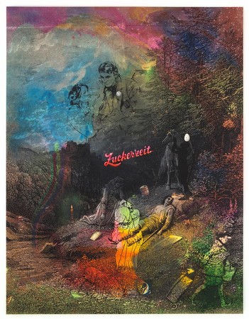 | Friedrich Kunath Lacan's Haircut September 8 - October 27, 2012 Opening reception: Saturday, September 8, 6-8 pm Blum & Poe is pleased to present Lacan's Haircut, Friedrich Kunath's fourth solo exhibition at the gallery. Anchored by a large body of new paintings, this immersive exhibition will also include sculpture, floor coverings, video and an accompanying book entitled "You Owe Me a Feeling" with text by David Berman. Kunath continues his exploration of the oppositional and the inherent dichotomy in every state of being. His search is for the ever elusive nature of the grasp of understanding. Pulled from outside to inside, from light to dark, from the humble to the vainglorious to the elated and the dejected, and back again, Kunath's world begs for an embrace, begs to be embraced. Kunath's new paintings offer even more ambitious equations, with single picture planes, including variables as diverse as history painting, still life, comic book imagery, commercial illustration, nature photography and lyrical references. These assemblages begin with a wash of color on thin fabric followed by subsequent layers of varying media, including India ink, silkscreen, lacquer, pencil, oil, acrylic and found objects. The combinations dissolve the constraints of time, genre and similar cardinal forces: a tan forearm thrusts the perfect spiral of a vanilla ice cream cone rendered in photorealist acrylic onto a wilted silkscreen of a Renaissance-era landscape. The resulting surfaces are not pictures as much as constellations of art historical movements, pop culture references and literary archetypes. With broad strokes, Kunath shepherds wayward and institutionalized forms into a more animated and exuberant present. Friedrich Kunath was born in Chemnitz, Germany in 1974 and lives in Los Angeles. He has exhibited widely including solo exhibitions at the Aspen Art Museum, CO; Schinkel Pavillon, Berlin; Kunsthalle Baden-Baden; Kunstverein Hannover and the Hammer Museum, Los Angeles, CA. Group exhibitions include Human Nature, Los Angeles County Museum of Art; Life on Mars: the 55th Carnegie International, Pittsburgh and The World is Yours, Palazzo Grassi, Venice. A solo presentation at The Sprengel Museum, Hannover is forthcoming. Dave Muller yeah yeah yeah yeah September 28 - October 27, 2012 Opening reception: Friday, September 28, 6-8 pm Blum & Poe is pleased to announce our seventh solo exhibition by Los Angeles-based artist Dave Muller. Dave Muller is endlessly fascinated with music in all its forms and everything it permeates, from the graphic residue that is the subject of his artwork - record sleeves, CD cases, disco balls, iPods - to his curatorial role as a deejay. His work is a visual depiction of his musical obsession, charting how music infiltrates and shapes our realities and serving as a portrait of its cultural impact. Muller's current body of work uses the final chorus line from the Beatles song She Loves You as a starting point to reveal as much about the hype of "Beatlemania" as the decade itself. Presented as a musical timeline from 1962 to 1970, the exhibition aurally and visually chronicles the Top 100 hits from each of those years through nine rooms within the exhibition. Utilizing computers as jukeboxes, Muller conjures brief moments of time travel, letting each song relive part of its former life. Interestingly, the Top 100 were not the radio hits of the 1960's. Progressive rock music had not yet replaced Sinatra-era standards, emphasizing the discrepancy between what was charted and what our memories recall. Further enhancing this revelation are Muller's works on paper, which are selectively placed throughout the rooms. His unique painterly style - loose and whimsical, yet deliberate and factual - depicts appropriated images familiar and forgotten. Together with the room's music, Muller's environment pits cultural nostalgia against reality, creating a reconsidered portrait of the decade. Dave Muller was born in 1964 in San Francisco and lives and works in Los Angeles. He has had numerous exhibitions in the United States and abroad, including solo shows at the Museo de Arte Contemporánea de Castilla y León, León, Spain; Institute of Contemporary Art, Boston, MA; San Francisco Museum of Modern Art, San Francisco, CA; and St. Louis Art Museum, St. Louis, MO. Recent group exhibitions include The Record: Contemporary Art and Vinyl, Nasher Museum of Art, Durham, NC; Rock-Paper-Scissors, Pop Music as Subject of Visual Art, Kunsthaus Graz, Graz, Augstria; and Sympathy for the Devil: Art and Rock and Roll since 1967, Museum of Contemporary Art, Chicago, IL. For further information, please contact the gallery at 310.836.2062 or [email protected]. | ||||