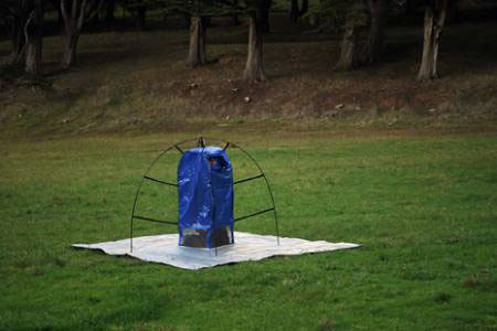 Michael Arcega, In Tents: Post-box, 2010 Sewn poly-tarp, tent poles, webbing, and plastic hardware, 4 x 8 x 10 ft | |||
