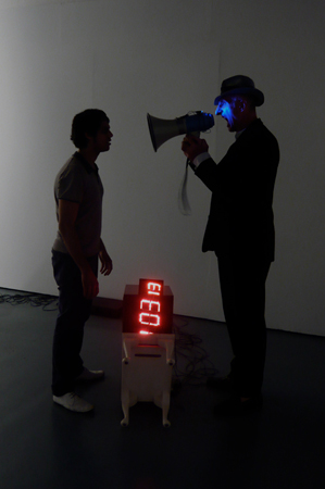 | Cabaret Futura Tom Humphreys � Jonty Lees � Haroon Mirza feat. Richard �Kid� Strange Private View Friday 5th September 2008 6th Sept.-5th Oct Open Fri.-Sun. 12 - 6pm Cabaret Futura suggests a future so clearly set in the past. It directly takes its name from the former Soho club of the 1980�s founded by Richard �Kid� Strange. His concept for the club was influenced by New York�s Kitchen, PS1 and The Franklin Furnace, which evolved into a hot house of collaborative and fringe music inside a mutated European Cabaret environment. The club�s name suggests its oxymoronic undertones combining the electronic sounds of the then new post punk music scene with live performance and a more underground mood of the vintage Berlin model immortalised, if not invented by, Auden and Isherwood. This exhibition will reflect much of the anticipation and the sentiment of �the happening�; an exhibition about the performance and its aftermath. The title being the underlying subtext for the show. All the works here either emerge via their sinuous percussion or an assemblage which suggests a playful intervention, experimental, inquisitive and open ended. Haroon Mirza works with a concoction of sculpture, video and audio installation. He merges elements that are typically regarded as incompatible and/or dangerous when combined: water and electricity, vintage furniture and fairy lights, Pachabel�s Canon and glitchy hypnotic beats, which chillingly conjure the urban wilderness of the distortion and weird sound effects of audio equipment in housing estates or the drenched echo of piped music in shopping malls. His compositions weave between electronic and analogue sound. Part of the exhibition will include a unique collaboration where Richard �Kid� Strange will perform live as part of Haroon�s Mirza�s sculptural intervention influenced by the late 70s and early 90s occult films of Kenneth Anger and Ken Russell. Haroon Mirza graduated from the Chelsea MA programme last year and after following a period of research, which he undertook in Pakistan has moved to Sheffield where he currently lives and works. His practice has been documented in RADAR in Art Kunst Magasin by Felix Kr�mer, curator of Hamburger Kunsthalle, Germany and he is to be included in �More Pricks than Kicks�, Generator Projects, Dundee and the �2008 New Contemporaries� to open as part of the Liverpool Biennale. Previous shows in 2007 include �Noise Reduction: off�, Dreizehnzwei, Vienna and �Working Things Out�, Spike Island, Bristol. Richard Strange, actor, writer, and musician, was the lead singer of the now disbanded �Doctors of Madness�, one of the few British bands who could credibly claim to be called 'proto-punk'. The band�s wall of white noise and feedback were the harmonic equivalent of bare-knuckle fighting. Since the band�s break up Strange has worked with a range of acclaimed film directors and artists from Tim Burton to Marriane Faithfull. His critically acclaimed memoir �Strange- Punks and Drunks and Flicks and Kicks� was published by Andre Deutsch in 2004. Working in sculpture, video and installation, Jonty Lees� series of sonic interventions have the lightness of touch, experimenting with the percussive noise of everyday objects and the familiar material of life. This effortless economy and complex nature of representation is at the heart of Lees work. Stemming from impatience and boredom sentiments associated with 90s rave culture there is always a playful and imaginative access route between each work and its audience. Lees is known for interfering with a space to create a concoction of unrest revisiting the gadgets and games of childhood memories or those poetic moments of daydreams. Jonty Lees lives and works in Cornwall and has recently undertaken an Artist Residency programme at Tate St Ives, culminating in a solo show with documented catalogue essays by Martin Clark and Michael Archer. In 2006 he had a solo exhibition at Moot, Nottingham and has recently been included in the Nought to Sixty programme at the ICA, London in a unique multi-layered event involving installation, performance and documentation organised by writer & curator Andrew Hunt. Tom Humphreys works with classic ideas of formal language, although his attitudes towards production demonstrate a refusal of the ideology of adopting a fixed artistic position. He utilizes the archetypal framework of modernism i.e. the frame, pedestal, and canvas where the recognizable fabric of display becomes the work itself. As artist, curator he incorporates the cultural and social form of the exhibition as a means of gerenerating chains of reference. His work, often �unfinished� in appearance seeks to explore the artist interest in the ideas to do with taste, and that whether or not something exists or is true. Tom Humphreys was the founder of Flaca, London, where he developed a program of international exhibitions and events. He has recently shown in group exhibitions at Carl Freedman and The Approach E2 Gallery and has exhibited internationally at Mezzanin Galerie, Vienna and Croy Nielsen Gallerie, Berlin. Humphreys lives and works in London. | ||||