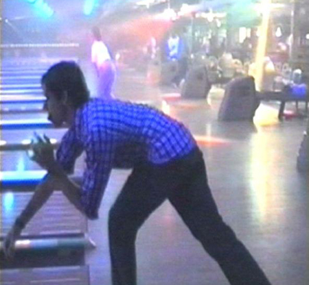 | Chapter Gallery Screenings: Stephen Sutcliffe - Shout Out (With El Hombre Trajeado) UK, 2002, 3 mins 43 secs, video Screening: Friday 9 May � Sunday 18 May 2008 / Arddangosfa: Dydd Gwener 9 Mai - Dydd Sul 18 Mai 2008 The screening room is open Wednesday - Sunday 12-8pm / Ar agor Dydd Mercher - Dydd Sul 12-8pm Initially produced for Evil Eye is Source for the Shadazz record label, Shout Out is shot in a US bowling alley with El Hombre Trajeado's soundtrack reversed and played over the alley's internal sound system and noisy crowd enthusiasm. Sutcliffe has reversed the video and the result is a remarkably simple and spellbinding work, where bowlers move balletically and yet erratically against a back-drop of spinning, colourful lights, evoking dream-like sequences of choreographed contemporary dance. Biography Stephen Sutcliffe was born in 1968 and lives and works in Glasgow, UK. Recent solo exhibitions include 'Tart Contemporary', San Francisco, US (2005) and 'Project Space', Tramway, Glasgow, UK (2003) and he has exhibited in group exhibitions that include 'Pass the Time of Day', Gasworks, London, UK and tour (2004); 'Zenomap', Venice Biennale, Italy (2003) and 'Electric Earth: Film and Video from Britain' (organised by the British Council), State Russian Museum, St Petersburg, Russia and tour (2003). Film courtesy the artist and LUX, www.lux.org.uk Chapter Gallery Screenings Friday 9 - Sunday 18 May Stephen Sutcliffe (with El Hombre Trajeado): Shout Out Friday 23 May - Sunday 1 June George Barber: Automotive Action Painting | ||||