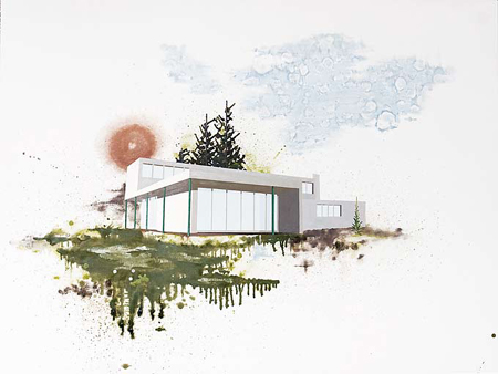 | Blaise Drummond At Home in the New World Oct. 30th thru Dec. 23th, 2010 Preview: friday, oct. 30th, 2010, 19 - 21 h, businesshours: tues - fr 13 -18 h, sat 12 -16 h and by appointment The works of Blaise Drummond are experimental set-ups in the field of fine arts. Over the immaculate white of the canvas, his repertoire of set pieces are (re)distributed to create constantly changing arrangements. These are fragments of the utopias of the 19th and 20th century, of Romantic yearnings for nature and enlightened Modernity; these polarities confront each other and thus create new connections. His works always oscillate between the failure of this Romantic idea and the discovery of a new beginning. Influenced by Post-Minimalist concepts, Drummond cites the reduced, abstract language of the 1960s and 1970s and transforms this into a semantic system that now belongs to our general culture. Drummond refers to these roots using architecture by Le Corbusier and van der Rohe, for example, seeing them as locations of idealised human existence, which he longingly evokes in his pictures and simultaneously presents as an artificial construct. In his pictures, the architectural icons of Modernity come together with drippings or decalcomania in plant form, profane objects or fragments of nature. Every element appears to float in an unsteady balance on the white of the canvas as if it had found its ideal location, if only for a moment. Then the artist permits the viewer to expose this completely staged harmony as a illusionary world. Drummond�s examination of the past does not produce any nostalgic d�j�-vu; instead, it directs our gaze towards the present through the mirror of our history. Blaise Drummond was born in Liverpool in 1967 and lives in County Longford, Ireland. He graduated from the National College of Art and Design (Dublin) in 1994 with First Class Honours in Fine Art Painting and Art History and received an M.A. in Fine Art Painting at the Chelsea College of Art in London four years later. He has had solo exhibitions at Museum Haus Lange (Krefeld, Germany), the Castlefield Gallery (Manchester), Stedelijk Museum Aalst (Belgium), Musee de l�Abbaye Sainte-Croix, Les Sables d�Olonne and the Crawford Municipal Gallery of Art (Cork). He has also participated in group shows with the Ikon Gallery (Birmingham), Irish Museum of Modern Art (Dublin), the Bluecoat Gallery (Liverpool) and many more, and was selected twice for the John Moores exhibitions in the Walker Art Gallery (Liverpool) and in the �Utopias� show at the Douglas Hyde Gallery (Dublin). Further information : Helga Weckop-Conrads 49.177.3230720 conrads lindenstrasse 167 d-40233 duesseldorf www.galerieconrads.de [email protected] +49. 211. 323 07 20 t +49. 211. 323 07 22 f dienstag � freitag 13 � 18uhr und nach vereinbarung samstag 12 � 16 uhr | ||||