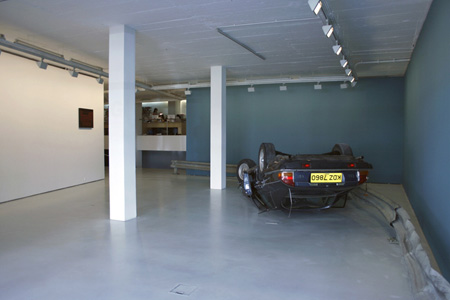| Cristina Guerra Contemporary Art is pleased to present BIG BANG, a solo exhibition featuring two new installations and bi-dimensional works by Jo�o Louro. Jo�o Louro is widely regarded as a leading artist of his generation. Best known for his BLIND IMAGES and DEAD ENDS, Louro idiosyncratically gathers together references culled from popular media alongside the work of radical theorists, either under the sleek, opaque surfaces of his BLIND IMAGES or on the large-scale, rhizomatic, grass roots traffic signs that constitute his series of DEAD ENDS. Over the past two decades, Jo�o Louro has defined several journeys, or better yet, the idea of journey and navigation, not from one productive or evolutional point to another, but along alternative, secondary roads, detours, forgotten paths and �cul-de-sacs� as one of the many defining subjects of his work. This time round, Louro has defined another impossible journey as the theme for his show: an expedition by car to the beginning or origin of all things, one that ends in chaos. The routes Louro proposes are never clear or linear, but rather somewhat labyrinthine, paths of flight from vertical order and prescription. It is never clear what his passengers can expect at the next turn � the journey is unpredictable � what awaits us at the next stop. The road is long and winding, and the one we have chosen to travel in the company of the artist is no exception. One senses from the back seat, from our view onto the desolate landscape, the exhilaration that radiates from the artist in his driver�s seat, his excitement at the roaring engine of his chosen vehicle, his obsession with this lost highway. Louro, a blind runner, has no fear of speed. He steps down on the accelerator and concentrates on the road ahead. All of a sudden, our driver looses control. The car screeches, careers out of control and grins against the rails, spinning. By some miracle, we come to a halt. As we pry ourselves from this twisted wreck, a sense of a new beginning, of new life, flushes over us. This is what feeds and pumps through the veins of this strange creature, the daredevil, the Hollywood stuntman, the suburban racer x-type who whizzes around the parking lot in his domestic vehicle: the possibility of return. Working directly in the space at Cristina Guerra Gallery, Jo�o Louro will recreate the �mise en sc�ne� of a fresh accident, presenting the wreckage of a crash and brutalised rails together with the fractured images or flashes of an ordered universe. Jo�o Louro has exhibited in Europe and the US. Recent solo exhibitions include �Blind Runner�, Centro Cultural de Bel�m, Lisbon (2004); and Play, Rec and Pause, Christopher Grimes, Santa Monica (2006); and the group shows �InSite �05 � Art Practices in The Public Domain�, S. Diego and Tijuana (2005), the 51st Venice Biennial, Venice (2005). �Blind Runner: An Artist Under Surveillance� is a documentary on the artist by director Lu�s Alves de Matos will premiere in DOCLISBOA on Friday, October 26th at 6.30pm. The screening will take place in the large auditorium of Culturgest (Rua Arco do Cego, Lisbon). Cristina Guerra Contemporary Art is located at Rua de Santo Ant�nio � Estrela 33, 1350-291 Lisbon Gallery hours are: Tuesday to Friday, 11am-8pm and Saturday 12am-8pm | ||||