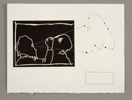 | Conversations with Angels is a new series of drawings informed by the life and work of John Dee (1527 - 1608) documenting 'actions' or seances mediated through his scryer, Edward Kelley. Locked in the secret interna bibliotheca of his house, Dee and Kelley pressed angelic spirits for the claves or keys that would enable them to decode the lost Enochian language. Enoch's Book of the Old Testament contained his own record of the language God taught Adam. Whoever discovered the Adamic language would rediscover the key of Divine Knowledge. A catalogue with a text by Iain Sinclair accompanies the exhibition. Alongside the drawings for Conversations with Angels, a separate room has been devoted to the correspondence in image and text between Oona Grimes and the writer Leslie Forbes. ABS NCES records the first two years of this collaboration, an unfinished journey that began at another exhibition in the summer of 2005 where Oona and Leslie met and expressed mutual admiration for each other's work. Oona then proposed an experiment: she would send Leslie an image, and to it Leslie would respond with words which would, they hoped, inspire Oona. When the correspondence proved interesting enough to continue, it was decided that there would be no deadlines set for the replies, no discussion of any map or direction that the travellers would follow. Characters emerged, a plot (its central mystery as yet unsolved), a theme...and a fractured timescale partly attributed to Leslie's epilepsy - which causes hallucinatory 'absence' seizures generated in her brain's left hemisphere - and above all, the freedom with which artist and writer have allowed the compass to swing freely between one hemisphere and the other. ABS NCES has also been published as a limited edition book. Oona Grimes trained at the Slade School of Fine Art and is a visiting lecturer at the Ruskin School of Fine Art, Oxford University. Recent exhibitions include Uncanny Tales (with Paula Rego, Ana Maria Pacheco and Marcelle Hanselaar) touring throughout UK and Belgium; P�che � la ligne, Brittany, France; Grotto, 1:1, London; Bounty, APT Gallery, London. Collections: New York Public Library; Manchester Metropolitan; Strang Collection, University College, London; The Governing Body of Macau; Lineker College, Oxford University; Victoria & Albert Museum, London. Born in Canada, Leslie Forbes has worked in London as a writer, artist and broadcaster for over twenty years. She is the author of four award-winning travel books. Her first novel, the international bestseller, Bombay Ice, was published in 1998 to huge acclaim. Her second novel, Fish, Blood and Bones, was nominated for the Orange Prize. Art Fair: Aqua Art Miami, USA 5 - 9 December 2007 Next: Katie Deith - new paintings 11 January - 10 February 2008 Nicky Coutts - video, photography and installation 22 February - 30 March 2008 Suky Best & Rory Hamilton - Rodeo, new animation 11 April - 11 May 2008 | ||||