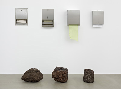 | Gabriel Kuri carbon index compost copy April 29 - June 1, 2011 In his second solo exhibiton at Esther Schipper, Gabriel Kuri will show new sculptural works combining white marble slabs and bank notes, hand towel dispensers and volcanic rocks, a photocopier wrapped in insulating roofing roll and a light box. Our New Address and Contact Details Esther Schipper Sch�neberger Ufer 65 D-10785 Berlin Tel: +49 (0)30 37 44 33 133 Fax: +49 (0)30 37 44 33 134 Office hours: Monday to Friday, 10am - 6 pm The gallery will be open from March 15, 2011 and then weekly, Tuesday to Saturday, 11am - 6 pm | ||||