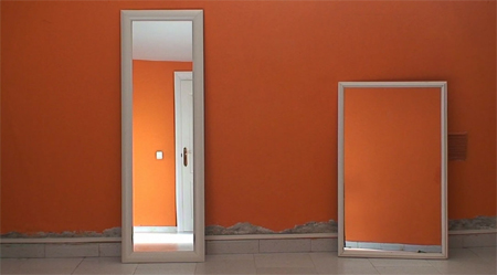| SANTIAGO ALCOCER El Estado Naranja June 16th to July 24th Private View: Tuesday 16th June 2009, at 20:00. Espacio Minimo Gallery�s current season comes to a close with Santiago Alcocer�s first solo show. El Estado Naranja � as the young artist from Madrid has titled the show - is taken for the name of the group of videos that make up the exhibition. The title references his earlier works - Los Tres Estados (El Estado Azul, el Estado Negro y El Estado Blanco) and El Estado Gris. The artist�s investigation centers around the interpretation of the different conditioning factors, be they internal or external, of our different states of mind, which can have as wide a range of nuances as a painter�s palette. Estado Naranja is made up of 10 short audiovisual stories, created between 2007 and 2009, which represent a hypothetical reality, a place where logic does not influence the narration of events, a world where natural laws are freely interpreted, in which time and space acquire a different dimension. With these works the artist intends to bring a unique and personal universe to life. He aims to visually represent the atmosphere, the time scales and the physical spaces that make up and govern the world that is El Estado Naranja. A world that, the artist recognizes, he can at time become immersed in. There is a main setting which all the videos share, an intimate and personal space which itself becomes a character and is conditioned by the events that occurr within it, each time relating to an aspect of the artist�s private life. Interaction come about by making use of the few scenic elements in the shot - one or two mirrors � which become a central to the story, initially performing their conventional role of reflecting a distorted image, to later become an access to another universe. Finally the artist uses them to play an illusionist trick, to create a trompe l'oeil that , far from just creating a sense of perplexity, could, in his own words, point towards a hypothesis that my mind generates to understand and make sense of the irreality that they reflect. All ten videos are shown in two of the gallery�s spaces. Three of them � Encuadre Naranja 7, Encuadre Naranja 8 y Encuadre Naranja 11, number 10 does not exist � are projected simultaneously in the main space. The seven remaining works are played in a loop on a plasma screen downstairs. Finally the exhibition includes three large format photographs that evoke the unsettling and disturbing world of the videos. SANTIAGO ALCOCER (Madrid, 1983) graduated in Fine Art at Universidad Complutense de Madrid in 2007. In 2008 he was selected for Circuitos by the Madrid Council and he exhibited at Galer�a Espacio M�nimo�s stand in ARCO_madrid 2009. Santiago Alcocer .- El estado naranja 16 Jun. 2009 / 24 Jul. 2009 La Galer�a Espacio M�nimo cierra la temporada actual con la primera exposici�n individual del joven artista madrile�o SANTIAGO ALCOCER, El Estado Naranja, t�tulo que designa al mismo tiempo la serie de v�deos que la conforman, y que retoma de una serie de trabajos anteriores �Los Tres Estados (El Estado Azul, el Estado Negro y El Estado Blanco) y El Estado Gris-. El artista investiga acerca de la interpretaci�n de los diferentes factores, tanto externos como internos, que condicionan nuestros estados de �nimo, y que pueden ser tan variados y tener tantos matices como la m�s amplia paleta de colores. El Estado Naranja lo componen diez peque�os relatos audiovisuales de escasa duraci�n realizados entre 2007 y 2009, que representan una realidad hipot�tica, un lugar donde la l�gica no influye a la hora de narrar los sucesos, un mundo en el que las leyes de la naturaleza son interpretadas libremente, en el que el tiempo y el espacio adquieren otra dimensi�n. Con estas obras, el artista pretende dar vida a un espacio �nico y personal, con la intenci�n de representar de forma gr�fica la propia apreciaci�n del entorno, la medida del tiempo y la comprensi�n del espacio f�sico que componen y rigen El Estado Naranja como un peque�o universo en el que, seg�n �l mismo reconoce, a veces se ve inmerso. El escenario principal, muy �ntimo y personal, es com�n en todas las piezas, convirti�ndose en un personaje m�s y condicionando las acciones que transcurren en �l, teniendo, cada uno, algo que ver con un aspecto privado del artista. La interacci�n se logra con los escasos elementos que componen el encuadre -uno o dos espejos- que llegan a ser un protagonista destacado dentro del argumento, empezando por cumplir su funci�n convencional, reflejar una imagen distorsionada, para convertirse en puertas de acceso hacia otros universos. Finalmente el artista se vale de ellos para realizar un juego ilusionista, una suerte de trampantojo que, m�s all� de limitarse a suscitar perplejidad, podr�an significar, en sus propias palabras, una hip�tesis que mi mente genera para comprender y dar sentido a la irrealidad que reflejan. Los diez v�deos de la serie se superponen en dos de las salas de la galer�a, tres de ellos �Encuadre Naranja 7, Encuadre Naranja 8 y Encuadre Naranja 11, el n�mero 10 no existe- en tres proyecciones simult�neas en la sala principal y los siete restantes en loop en pantalla de plasma en la sala inferior. La exposici�n se completa con tres fotograf�as de gran formato que no pueden dejar de evocar el universo inquietante y turbador de los v�deos. Galer�a Espacio M�nimo Doctor Fourquet, 17 E-28012 Madrid (Spain) Tf: 34 91 467 6156 Fax. 34 91 467 8331 E-mail: galeria @ espaciominimo.com | ||||