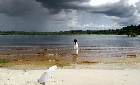 | The Ghost in Between Janaina Tschäpe Opening 06.02.2014, 19h - 22h Exhibition 06.02.2014 | 15.03.2014 Galeria We are pleased to present the exhibition The Ghost in Between, in which the New York based artist, Janaina Tschäpe, shows her most recent film. Produced in Amazonia and presented as a double projection, the work focuses on the romantic outlook towards a world to be explored of the 18th- and 19th-century scientific journeys. The practice of video and photography is parallel to that of painting and drawing in Tschäpe’s poetics. The different media are constantly influencing each other. Within these four fields, over the years, the artist has resorted various times to mythology and literature in counterpoint to the discoveries of science in order to create fantastic beings, fictitious plants and cells, in a universe where the real and the imaginary coexist. The film’s title alludes to the playful custom of the inhabitants of the Upper Amazon River to look for ghosts in photographs. According to them, the ghost is in the fringe between the edge of the riverside vegetation and its reflection in the river. For the indigenous people who make up the basis of the local population, the invisible world is as real as the visible one, and this informs the rich and hybrid Amazonian mythology. The Ghost in Between proposes a subjective journey by flirting with the romantic idea of the search for the unknown. We see a woman navigating through the landscape, reflected in a motionless and mirrored Rio Negro. The image becomes abstract, like the symmetric splotches of a Rorschach psychological test, and the known world thus opens a space for the existence of mystical beings. The woman metamorphoses into a girl and into a creature, and returns to being a woman. There are scenes peopled by children and anthropomorphic beings that sometimes remain motionless, as in ethnographic documents, and sometimes interact with nature in scenes juxtaposed to the landscape sequences. In an ambiguous narrative, at times bordering on the exploration of the exotic, the artist subverts and precisely questions the place of the observer and the observed. The imaginary and fantastic world, steeped in a veiled naive romanticism leads us to a place where nothing can in fact be defined, the place where ghosts dwell. Janaina Tschäpe was born in Munich, Germany, in 1973. Her solo shows have most notably included Quimera at the Irish Museum of Modern Art (IMMA), 2008; and in 2009 at the Triennial of the International Center of Photography, New York, and at Kasama Nichido Art Museum, Japan. She has participated in group shows at MAC USP, São Paulo; MAM, Rio de Janeiro; LiShui Museum of Photography, China; New Museum, New York; Guggenheim Museum, New York; and other venues. Her work figures in important collections such as those of Itaú Cultural, São Paulo, Brazil; Moderna Museet, Stockholm, Sweden; Inhotim Centro de Arte Contemporânea, Minas Gerais, Brazil; Centre Pompidou, Paris, France; and Museu Nacional Centro de Arte Reina Sophia, Madrid, Spain. | ||||