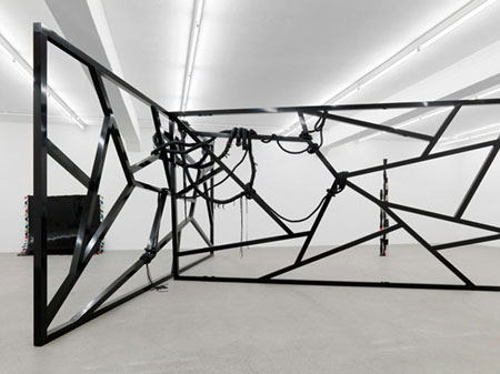 | EVA ROTHSCHILD November 7 to December 23, 2009 Opening: Friday, November 6, 6 � 8 pm Galerie Eva Presenhuber is pleased to announce the opening of Eva Rothschild's second show at the gallery. Born in Dublin in 1971, Rothschild studied at University of Ulster in Belfast and Goldsmiths college. In recent years, Rothschild has earned a reputation as one of Britain�s leading sculptors. She was awarded the 2009 Duveens Commission by the Tate Britain, and her large scale installation 'Cold Corners' can be seen there until November 29th. For her show at Galerie Eva Presenhuber, she has created a new body of works which draw on her continued interest in sculptural form and perceptual confusion. The act of making and the transformation of materials are fundamental to Rothschilds practice, and she is always interested in the expansion of her sculptural vocabulary through the introduction of new processes. For Rothschild the complications surrounding the physical presence of each piece are key, she is always keen to explore the gap between the physical manifestation and the visual perception of the work. Central to her practice is the question of how the work will be transformed by the eye, body and consciousness of the viewer. Here, alongside her leather and wooden works, she will present new pieces made using resin, ceramics and found objects. Two large screens held together by a tangled mass of woven leather will dominate the gallery, creating a temporary centre around which the other almost domestic scale objects orbit. Eva Rothschild 7. November bis 23. Dezember 2009 Vernissage: Freitag, 6. November, 18 � 20 Uhr Galerie Eva Presenhuber freut sich, die zweite Einzelausstellung von Eva Rothschild zu pr�sentieren. Die 1971 in Dublin geborene K�nstlerin absolvierte ihr Studium an der University of Ulster in Belfast sowie am Goldsmiths College der University of London. In den j�ngsten Jahren hat sie sich den Ruf einer der f�hrenden Bildhauerinnen Grossbritanniens erworben. Dieses Jahr wurde sie von der Duveens Commission der Tate Britain mit der Gestaltung einer Ausstellung beauftragt; das Ergebnis, eine raumgreifende Installation mit dem Titel �Cold Corners�, ist noch bis zum 29. November in der Tate Britain zu sehen. Im Hinblick auf ihre Schau in der Galerie Eva Presenhuber hat sie eine neue Werkgruppe erarbeitet, die aus ihrem ungebrochenen Interesse an skulpturaler Form und perzeptiver Verwirrung sch�pft. Von grundlegender Bedeutung in Rothschilds Praxis ist der Akt des Erschaffens und des Verwandelns von Materialien, wobei sie stets bestrebt ist, ihr bildhauerisches Vokabular durch die Einf�hrung neuer Arbeitsweisen zu erweitern. In Rothschilds Augen nehmen die Verwicklungen, die sich aus der physischen Pr�senz eines jeden Werks ergeben, eine Schl�sselrolle ein � so erudite sie mit unabl�ssigem Eifer die Kluft zwischen der physischen Erscheinungsform und der visuellen Wahrnehmung ihrer Arbeiten. Ebenfalls ein zentraler Punkt in ihrem Schaffen ist die Frage, wie sich ihre Werke im Auge, K�rper und Bewusstsein des Betrachters ver�ndern. In diesem Zusammenhang wird Eva Rothschild nebst ihren Leder- und Holzarbeiten auch neue Werke aus Harz, Keramik und vorgefundenen Gegenst�nden zeigen. Deutlich hervortreten werden in der Galerie zwei grossfl�chige, durch eine verworrene Masse aus geflochtenem Leder zusammengehaltene Leinw�nde, die den vor�bergehenden Mittelpunkt bilden, um den die anderen, klein- bis mittelformatigen Objekte kreisen. F�r weitere Fragen kontaktieren Sie bitte Paula Stec in der Galerie. | ||||
