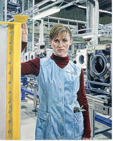 Holger Niehaus/Ulrich Lamsfu�, Arbeiterbild (Sophie Rois), 2008 Oil on canvas, 100 x 80 cm Image � Ulrich Lamsfu�. Courtesy Galerie Max Hetzler | |||
