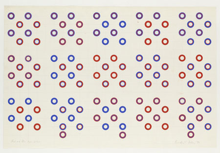 Bridget Riley, Circles Colour Structure - Studies 1970/71 Position Study: Red and Blue Open Discs, 1970 Gouache and pencil on paper, 69,2 x 101,6 cm / 99 x 128,5 cm, framed | |||