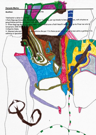 | Anri Sala & Edi Rama: Creating Space Where There Appears To Be None 18 Januar - 16 März 2013 Eröffnung: Donnerstag, 17 Januar 2013, 19-21 Uhr Künstlergespräch um 19.30 Uhr: Okwui Enwezor, Direktor im Haus der Kunst München im Gespräch mit Anri Sala und Edi Rama Die Galerie Rüdiger Schöttle freut sich, das Jahr 2013 mit einem Ausstellungsprojekt des Künstlers Anri Sala zu beginnen. Seit 2000 stellt die Galerie Rüdiger Schöttle Anri Sala regelmäßig aus. Bisher waren ausschließlich Filminstallationen präsentiert, die aktuelle Ausstellung konzentriert sich nun auf das Projekt ‚Creating Space Where There Appears to Be None’, das in Zusammenarbeit mit dem Künstler Edi Rama entstand und zu dem Gesprächsaufnahmen und eine Reihe von Zeichnungen von Edi Rama und Anri Sala gehören. Edi Rama, mit Anri Sala befreundeter Künstler und Politiker, beteiligte sich nach Zusammenbruch des kommunistischen Regimes aktiv an den ersten Demokratiebewegungen Albaniens. Nach einem Aufenthalt in Paris, bei dem er sich ganz seiner künstlerischen Karriere widmete, kehrte er in den 1990er Jahren nach Albanien zurück und war unter anderem von 1998 bis 2000 Minister für Kultur, Jugend und Sport, danach Bürgermeister von Tirana von 2000 bis 2011. Seit 2005 ist er Vorsitzender der Sozialistischen Partei (SP). "Creating space where there appears to be none between the foreground and the background of a drawing, an in-between dimension: through the rabbit hole we freefall to unfold the compressed space underlying a doodle over the papers of a politician. Duty-freed from the dire reality of their pages, Edi Rama's doodles take on a repetitive form like that of a "reality planner" whose bird's eye vision of a landscape demarcates neighbourhoods as zones of thought through the cartography of colour. The lines curve and curl, never remaining straight for too-great a distance, loosely binding the day-to-day. Over the past 10 years, these automated abstractions have connected the present to the otherwise unintelligible future." Anri Sala, 2010 ‚Creating Space Where There Appears to Be None’ beruht auf einem gleichnamigen Projekt aus dem Jahr 2010, bei dem Anri Sala von der Berliner About Change, Collection eingeladen war, in einer Art Ateliersituation ein Kunstprojekt zu erarbeiten. Sala hatte damals den befreundeten Künstler Edi Rama eingeladen und das Studio nicht nur als Ausstellungsort, sondern auch als Ort zur Aufnahme von Gesprächen mit weiteren Gästen genutzt: es wurden Dialoge zwischen Edi Rama und dem Kunsthistoriker Michael Fried, dem Künstler Philippe Parreno, dem Philosoph Marcus Steinweg und dem Aktivisten Erion Veliaj aufgenommen. Die aktuelle Ausstellung in der Galerie Rüdiger Schöttle ist als Dokumentation und Fortsetzung gleichermaßen zu sehen. Die Dialoge der damals mitwirkenden Personen werden im Erdgeschoss der Galerie an Hörstationen präsentiert. Zur Ausstellungseröffnung wird ein weiteres Gespräch aufgezeichnet und setzt die Konversationsreihe fort: Edi Rama und Anri Sala sprechen mit Okwui Enwezor, Direktor des Haus der Kunst, München. Im ersten Stock der Galerie ist die Serie der ‚Inversions’, Resultat der Zusammenarbeit zwischen Edi Rama und Anri Sala, ausgestellt. Die sogenannten ‚doodles’ (zu Deutsch ‚Kritzeleien’) zeichnet Edi Rama während seiner beruflichen Tätigkeit als Politiker, also während Sitzungen oder Telefonaten - dabei bleibt vorerst offen, ob die Zeichnungen Produkte größter Aufmerksamkeit oder Resultate tagträumerischer Abwesenheit sind. Wie Lavaströme ergießen sich Linien, Formen und Farben auf dem Papier und können so als Sinnbild unserer assoziativen Gedankenflüsse gelesen werden. Anri Sala antwortet auf die Zeichnungen seines Freundes und entwickelt seinen eigenen Blick darauf: er extrahiert die Farben, Formen und Linien und kreiert neue Kompositionen. In einem weiteren Schritt konfrontiert er diese neuen zeichnerischen Gebilde mit jenen Edi Ramas: gespiegelt legt er sie auf die Rückseite der Zeichnungen. Die gerahmten Zeichnungen sind – um Vorder- und Rückseite betrachten zu können – senkrecht zur Wand gehängt. Anlässlich der Ausstellung wird eine Publikation veröffentlicht, in der sich Anri Sala mit verborgenen Beziehungen und unterschiedlichen Realitätsschichten auseinander setzt. Den Zeichnungen Edi Ramas und seiner ‚Inversions’ stellt er internationale, nationale und lokale Nachrichtenmeldungen sowie Zitate aus Aleksandr Rodchenko's Tagebuch ‚Experiments For The Future’ (1911-1956) gegenüber und eröffnet damit neue Verbindungen. Die Publikation wird zudem die vier Gespräche mit Michael Fried, Philippe Parreno, Marcus Steinweg und Erion Veliaj beinhalten. Anri Sala wurde 1974 in Tirana geboren und lebt und arbeitet in Berlin. Er hatte u.a. Einzelausstellungen im Museum for Contemporary Art Miami, in der Serpentine Gallery London, im Centre Pompidou Paris und im Louisiana Museum for Contemporary Art Humlebæk/Dänemark. 2012 war er Teilnehmer der dOCUMENTA (13) in Kassel, 2013 wird er Frankreich bei der Biennale in Venedig repräsentieren. In München ist bis 10.2.2013 seine Arbeit ‚Long Sorrow’ in der Ausstellung ‚ECM - eine kulturelle Archäologie’ im Haus der Kunst München zu sehen. Termin Künstlergespräch am 17.1.2013, 19.30 Uhr: Okwui Enwezor, Direktor im Haus der Kunst München im Gespräch mit Anri Sala und Edi Rama english Anri Sala & Edi Rama: Creating Space Where There Appears To Be None January 18 – March 16, 2013 Opening: Thursday, January 17, 2013, 7 – 9 pm 7.30 pm: Okwui Enwezor, Director of the Haus der Kunst, Munich, Anri Sala and Edi Rama in conversation Galerie Rüdiger Schöttle is pleased to open 2013 with an exhibition project by the artist Anri Sala. Galerie Rüdiger Schöttle has been regularly exhibiting Anri Sala’s work since 2000. These exhibitions have so far been confined to his film installations. However, the current exhibition is now concentrating 
