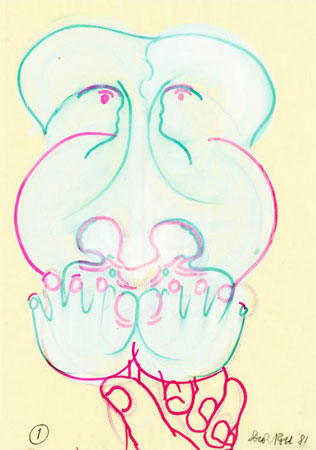 Dieter Roth, detail from 13 Lollies mit Ruckseiten, 1981. 13 Drawings (recto/verso); pencil, felt-tip pen, gouache on yellow paper; 11 5/8 x 8 1/4 inches (29.5 x 21 cm) 17 1/4 inches (53.3 x 43.8 cm) framed | |||