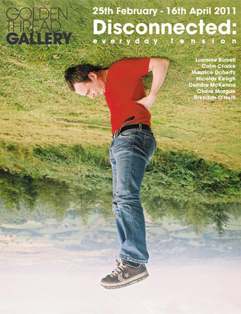 | Disconnected: everyday tension 25th February � 16th April 2011 �disconnected�adrift in a relentless stream of social global media� updated� informed� with an understanding of all the pressing issues� armchair managers, water-cooler brokers, bus-shelter chief executives� omnipresent�knowing all� liked�blissfully disconnected from the neighbours� jobs in balance� faith blurred � suspended, powered up� disenchanted� beyond the rose tinged sex, drugs and violence of the rural idle� defined by the warmth and safety of negative equity� Disconnected: everyday tension is an exhibition of works by Maurice Doherty, Colm Clarke, Deirdre McKenna, Claire Morgan, Brendan O�Neill, Nicholas Keogh and Lorraine Burrell; exploring a range of observations and strategies engaged with rethinking superficial assumptions and contemporary shortcuts. About the artists Lorraine Burrell works in video and photography. She completed an MFA at the University of Ulster in 2005 and exhibits both nationally and internationally including Intersection: Globalization and Identity, Youkobo Art Space, Tokyo; Video Festival 07, Valencia, Spain and Engaged in Recreation, Borusan Culture and Art Centre, Istanbul. Her work is represented in various collections including the University of Ulster, Belfast. At present Burrell is represented by The Third Space Gallery, Belfast. Colm Clarke is an artist based in Belfast creating actions, sonic scores, and situations. He received a BA (hons) Fine Art from University of Ulster (2006) and was a co-director of Catalyst Arts between 2006 and 2008. He currently sits on the board of Bbeyond and is collaborative organiser with A4 sounds & MOOK collectives. Clarke has created actions locally and internationally with his live work featured at Arts Electronica, Belgrade Triennial, Art Karavan and Exist-ence. Clarke develops his approach as a tactile strategy focusing on the body and the relationship between the individual and the environment. He is interested in phenomena such as vibration and resonance in considering the mechanisms of entanglement and aesthetics of power. Maurice Doherty (b.1972) graduated from the University of Ulster, Belfast (1997) and went on to complete a Masters of Fine Art at Glasgow School of Art in 2001. Recent group exhibitions include: Beursschouwburg Kunstencentrum, Brussels (2010), MMX, Berlin (2010), Vulpes Vulpes, London (2010), The Project Room, Glasgow (2010), The City Art Rooms, Auckland (2009), and The Scottish National Gallery of Modern Art, Edinburgh (2009). Waiting is a video installation by Maurice Doherty, in which five waitresses have been employed to stand holding a tray of filled champagne glasses for as long as possible. Owing to the weight of the trays, the physical exertion and fatigue of each waitress increases as time moves on. Recorded as a single shot and presented life-size, voyeuristic implication becomes an integral part of the installation and synonymous to the protagonist�s travails. Nicholas Keogh (b. 1977) studied at the University of The West of England where he received a BA (Hons) in Fine Art in Context. Keogh lives and works in Belfast and is based at Lawrence Street Workshops. In recent years Nicky Keogh has participated in Experience Pommery #5: L'art en Europe 2008, Venice Biennale 2005. He has also exhibited internationally in New York, Chicago, San Sebastian and Lisbon. Deirdre McKenna (b.1973) is a Belfast based visual artist. McKenna studied Fine Art at the RTC Sligo, and then at the University of Ulster, Belfast. She acted as a co-director of Catalyst Arts between 2002 and 2004, exhibiting, organising and collaborating. McKenna returned to the University of Ulster to complete her Masters in Fine Art graduating in 2007. She received the Royal Ulster Academy�s Outstanding Student Award and the Dean�s Prize for her work. McKenna is a studio holder at Flax Art Studios, Belfast. Her work is housed in the Arts Council of Northern Ireland collection, in addition to numerous private collections. The work McKenna produces is often highly detailed with a personal narrative. Having trained as a painter, McKenna�s work lives somewhere between painting and sculpture with a strong emphasis on image making. She draws on the elevation of everyday situations and stories. Claire Morgan was born in Belfast and is now living in London. She has exhibited internationally, with solo and group shows in the UK and Europe, and museum shows in US and Australia. In 2004, Claire won awards from the Royal British Society of Sculptors and in 2006 was awarded first prize in the Premio Fondazione Arnaldo Pomodoro, Milan. In 2008, Gone With The Wind, shown at The Laing Gallery, received acclaim. Morgan�s work is concerned with the notion of change, the passing of time, and the transience of everything around us. There is a sense of fragility and a lack of solidity that carries through her practice. Animals, birds and insects have been present in her recent sculptures, with the use of suspense to create something akin to freeze frames. The evidence of gravity - or lack of it - inherent in these scenarios is what brings them to life, or death. Brendan O�Neill (b.1971) studied Fine Art at the University of Hertfordshire from 1994�1997 and on the MFA course at the University of Ulster from 2002�2004. O�Neill worked as a visiting lecturer in the Fine Art Department at the University of Hertfordshire from 1999�2002 and was awarded a three-year studio fellowship at the Digswell Art Trust (1998-2001). He also co-directed at Catalyst Arts, Belfast, from 2004�2007. O'Neill uses artistic practice as a tool for examining our perception of reality as well as our relationship to culture and its productions. His work explores the iconography of evangelism; "I am interested in the ways in which art and faith are connected and in the process of how images and objects are endowed with meaning beyond their materiali