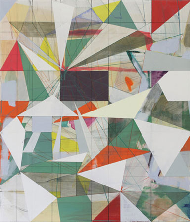 | Andrew Bick Systems for Hesitation Private view: Thursday 7th May 6-8pm 8th May-20th June 2009 Hales Gallery is pleased to announce Andrew Bick�s third solo show with the gallery. Bick�s new exhibition Systems for Hesitation continues to explore notions of uncertainty, revision and adjustment. Using a varied selection of materials including oil paint and watercolour, marker pens and wax on linen or wood, the resulting paintings and drawings serve as ambiguous objects, solid things built out of contradictions. Bick engages with familiar polarities of painting; clashing elements of gestural passage with hard-edge abstraction or thick, rough and painterly with ordered and smooth. The title OGV (Original Ghost Variety), runs through the new sequence of works which borrow from the series Again made in 2005 and the subsequent Ghost paintings of 2006-08. Images of these earlier pieces have been projected on panels the same size to create a revised grid, from which the new paintings are built up in a complex sequence of decisions which Bick describes as a �stuttering system�. This under-drawing, which is often left exposed, is an important element in the work, providing each painting with a clear structure that makes the process of facture transparent. Past paintings involved a grid marked out in pencil, but within this new body of work, Bick has introduced centrifugal webs of line, sometimes made with coloured marker pen that bleeds though the layers of oil paint, creating off centre or clashing perspectives which draw the viewer into a disconcerting vortex. Bick's work has always been concerned with uncertainty as a subject as well as the humour found in the gap between language and visual object. Early titles such as For Dithering and For the Undecided, accompanied encaustic paintings of physical bulk and directness. The development of titles in his work since 1999, Loop, Disco, Disco Pants, Disco Vest, Panz and West, Variant, Trauser and Shirth, Variant Ghost, Retrial/Again, OGV (Original Ghost Variety), adds other warped layers to an already unsettled interaction between words and visual ideas. Andrew Bick is currently working on a Research Fellowship at the Henry Moore Institute in Leeds called Eccentric Construction. This project will lead to a curated exhibition Construction and Its Shadow at Leeds City Art Gallery in 2010 exploring the relationship between the important but largely neglected British Construction Artists of the 1950�s and 1960�s and contemporary practice. Bick is also included in an upcoming show Slow Magic at the Bluecoat Gallery, Liverpool and an on going collaboration with MAKE Architects and Derwent London which is due to be realised by 2013. His most recent solo exhibitions were at Rubicon Gallery, Dublin, April 2008 and Von Bartha Garage, Basel, September 2008. | ||||