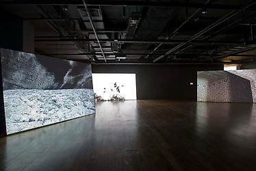 James Cohan Gallery is pleased to present our second solo exhibition by Japanese-born, London-based artist Hiraki Sawa. The centerpiece of this exhibition is a video and sound installation entitled O (2009), originally commissioned by the Queensland Art Gallery for The 6th Asia Pacific Triennial of Contemporary Art in Brisbane, Australia. Presented across a triptych of large-scale projections, ten small video monitors and five channels of audio, O abstracts the notion of time by the simultaneous depiction of interior and exterior spaces, meditations on the moon and the earth, and suggestions of the present and distant past.