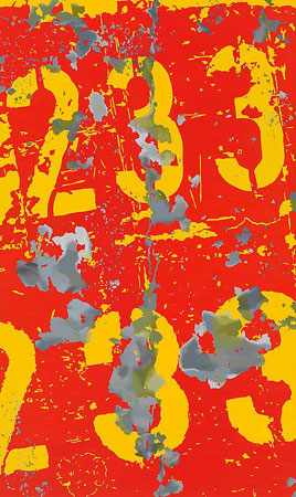 The paintings and the large-scale wall drawing on view mark a significant shift in Calame�s use of medium and imagery. Ingrid Calame developed this new body of work during an artist residency at the Albright-Knox Art Gallery in Buffalo, NY in 2009 where she made tracings from the shipping dock floors of the nearby former Bethlehem Steel Plant amongst other locations. She was attracted to the inventory numbers that were hand-stencilled on the factory floors for their low-tech, utilitarian efficiency. Used for locating rolls of steel by the overhead crane for shipment, these eroded numbers embody displacement and erasure in function as well as form. The exhibition consists of oil on aluminium panel paintings, six of which measure 24 x 40 inches, and one that is 36 x 72 inches.