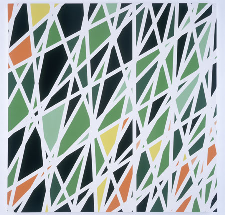 Invisible Cities is an exhibition curated by artists Katie Pratt and Roger Kelly. The works in the exhibition are by a mixture of nine established artists who all have a previous relationship with Jerwood: Basil Beattie, Tom Chamberlain, Prunella Clough, Katy Dove, Vincent Hawkins, Sarah Morris, Carol Rhodes, Thomas Scheibitz and Daniel Sturgis. These particular painters are for the first time being shown together at the Jerwood Space.