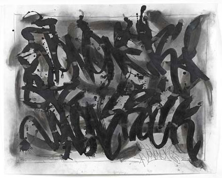 | JONONE - ABSTRACTIONS New works from paper to installation Vernissage samedi 27 Novembre 2010, de 18h � 21h Exposition du 27 Nov au 24 D�c 2010 Galerie Magda Danysz - 78, rue Amelot Paris 11 Opening Saturday November 27th, 2010 from 6pm to 9pm Show from 27 Nov to 24 Dec 2010 Magda Danysz Gallery - 78, rue Amelot - Paris 11 JonOne has no limits, his painting takes up all the space given to him, his colors are rich and lively, forms get entangled with each other, release themselves, bend then become rigid. He renews his style in each of work. In this exhibition, his work becomes more abstract, he is taking a new direction. He says "motion is the most important thing". JonOne�s work is guided by this and appears rarer and more significant than before. He releases himself by painting. This is what confers to JonOne�s style the particularity of being one of the most personal ones of his generation. The Magda Danysz Gallery is happy to present the JonOne�s new works, from November 27th till December 24th, 2010. His everlasting support to street art is once again made clear, through this exhibition.Originally from Harlem, JonOne started tagging on the subways of New York when he was seventeen years old. He is a founding member of the bronx born American taggers group 156 crew. The orientation of his style towards abstraction has contributed to making him a well rounded artist and this in a very short span of time.His artistic qualities, particularly the affluence of his works and his multidisciplinarity, have brought him international fame. He was exposed in the Palais de Tokyo in 2003 and in cities such as Monaco, Brussels, Berlin and New York. JonOne also showed a monumental piece of work in the exhibition N� dans la rue in 2009 in the Cartier foundation for contemporary art and completed art, a unique performance during the Paris Art Fair in March, 2009.The work of JonOne stands out thanks to the uniqueness of his style. This extremely productive artist creates abstract works full of life and energy. This admirer of memorable painters such as Pollock or Kandinsky has inspired himself from popular culture, to create works characterized by excitement and the color movement. These great works go beyond aestheticism and suggest a message, as the artist says "I wanted to show through my work the anger, the frustration, and the faith inside me when I made them. It is probably the meaning of all these colors ".JonOne has no limits, his painting takes up all the space given to him, his colors are rich and lively, forms get entangled with each other, release themselves, bend then become rigid. He renews his style in each of work. In this exhibition, his work becomes more abstract, he is taking a new direction. He says "motion is the most important thing". JonOne�s work is guided by this and appears rarer and more significant than before. He releases himself by painting. This is what confers to JonOne�s style the particularity of being one of the most personal ones of his generation. | ||||
