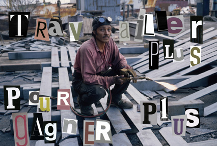 | ALLAN SEKULA 8.03 - 5.04.2008 Vernissage samedi 8 mars, 16h-21h _______________________ COMMUNIQUE DE PRESSE (please scroll down for English) La galerie Michel Rein est heureuse de pr�senter la quatri�me exposition personnelle d�Allan Sekula. Sa derni�re s�rie de photographies Shipwreck and Workers a �t� montr�e � la derni�re Documenta de Kassel (commissaires Roger Buergel et Ruth Noack, 2007). Deux expositions r�trospectives de l�artiste sont en pr�paration aux Etats-Unis et en Europe: � la Renaissance Society de Chicago (2008) et � la Zacheta Gallery de Varsovie (2009). Notes pour l�exposition � la galerie Michel Rein, 2008 -Shipwreck & Workers (Naufrage et Travailleurs) : il s�agit de photos d�un monument � portable et temporaire � d�di� au travail, r�cemment install� en version ext�rieure dans Bergpark, sous le monument d�Hercule, � Kassel, pour la Documenta 12 (2007). Le �Naufrage� flottait sur un radeau dans le bassin de Neptune. Le visiteur devait gravir 500 marches pour voir les autres photos install�es de part et d�autre de l�escalier monumental. �C�est du travail de regarder le travail�. Douze photos de travail et de travailleurs qui rappellent les douze travaux d�Hercule, le fou stakhanoviste de l�Antiquit�. Par contraste, qui oserait �riger un monument � M�d�e ? Museum guards (Gardiens de mus�e) -l�un est po�te, le second dessinateur de bande dessin�- ils travaillent � la Henry Art Gallery de Seattle, o� Fish Story a �t� expos� en 1999. -Travailler plus pour gagner plus : 3�me opus d�une s�rie de photos o� des phrases form�es de lettres d�coup�es sont appos�es sur une image d�un soudeur de chantier naval d�coupant de l�acier � Ensenada, Mexique (photo originale, 1996, de la s�rie Dead Letter Office, montr�e � la galerie Michel Rein en 1998). La premi�re version Alle Menschen werden Schwestern (Tous les hommes deviendront s�urs) a �t� montr�e � l�ext�rieur de la gare de Kassel pendant la Documenta 12. La seconde version s�intitule Los ricos destruyen el planeta (Les riches d�truisent la plan�te). Ces phrases, v�ritables slogans pour le 21�me si�cle, sont de rares occasions o� Allan Sekula juxtapose directement l�image et le texte, alors que ses �uvres assuraient d�ordinaire une relative autonomie aux deux �l�ments. -Etudes Laotiennes : Allan Sekula a visit� Luang Prabang et la r�gion alentour en octobre 2005 et janvier 2006. Pendant ces visites il a pris des images pour un film intitul� A short film for Laos (Un court film pour le Laos), ainsi que pour une s�rie de photographies. Deux sont des diptyques : B-52 crater, qui montre un crat�re creus� par une bombe dans la Plaine de Jarres, une r�gion du Laos encore marqu�e par les bombes l�ch�es pendant la guerre du Vietnam. Whisper (Murmure) est le portrait d�une villageoise laotienne murmurant � l�oreille d�une amie. D�crivant ces images, Sekula �crit: � B-52 crater est la 3�me photographie que j�ai faite sur le mod�le du �split-basin� (bassin divis�), c�est � dire une d�pression de terrain circulaire prise � l�oblique, de sorte qu�elle apparaisse ovale ou elliptique, et divis�e en son centre par le cadre. Les deux autres sont Doomed Fishing Village of Ilsar (1993) de la s�rie Fish Story et Oil Recovery Pit, Lendo (2002) de Black Tide. La division de l�image par le cadre est une fa�on de �domestiquer� un �l�ment topographique, en lui donnant plus ou moins l�air d�un �vier de cuisine. La violence r�siduelle rendue par B- 52 crater, la trentaine d�ann�es qui sont pass�es depuis le choc assourdissant des explosions (on s�estimait heureux si on perdait seulement un tympan), m�ne � Whisper, un moment inaudible d�une conversation priv�e entre deux villageoise laotiennes. C�est une des nombreuses photographies que j�ai faites dans lesquelles entendre ou parler prend une place centrale comme dans Dockers listening (1999) de la s�rie Freeway to China. � L�exposition sera compl�t�e par la projection du film A Short Film for Laos (2006) pr�sent� � la derni�re Biennale d�Istanbul (cur. Hou Hanru, septembre 2007). � On peut dire que c�est un essai sur ce dont le monde est fait, c�est-�-dire l�eau et le feu, le fer et la terre. Ironique, compatissant et d�une simplicit� d�sarmante.� Olaf M�ller, Film Comment, janvier 2008. Prochaine exposition : ORLAN, 12 avril - 17 mai 2008 Foires : ART BRUSSELS 17-21 avril / VIENNAFAIR 24-27 avril _______________________ PRESS RELEASE Galerie Michel Rein is happy to present Allan Sekula�s fourth solo show at the gallery. Sekula�s recent series of photographs, Shipwreck and Workers, was shown at the last Documenta in Kassel (curators: Roger Buergel and Ruth Noack, 2007). Retrospective exhibitions of his works are in preparation in Europe and in the United States : at the Renaissance Society in Chicago (2008) and at the Zacheta Gallery in Warsaw (2009). Notes for exhibition at galerie Michel Rein, 2008. - Shipwreck and Workers: photos from a �portable, temporary� monument to labor, last installed outdoor in the Bergpark, below the Hercules monument in Kassel, for Documenta 12. The shipwreck floated on a raft in the Neptune Basin. The viewer climber over 500 steps to see the other photos flanking the stairs. It�s hard work to look at work. Twelve photos of work and workers to recall the twelve labors of Hercules, Stakhanovite-madman of the ancient world. By contrast, who would dare to erect a monument to Medea? The Museum Guards�one a poet, the other a cartoonist�are working at the Henry Art Gallery in Seattle, where Fish Story was exhibited in 1999. - Travailler plus pour gagner plus: from a series of happy-captioned ransom note overlays on a photo of a shipyard welder cutting steel 