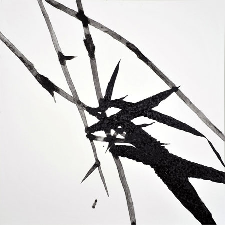 | Shan Fan "HOMELAND: PAINTING THE MOMENT - PAINTING SLOWNESS" September 4 - October 31, 2010 opening: September 4, 2010, 4 p.m. - 7 p.m. "Shan Fan: HOMELAND Painting the Moment � Painting Slowness" by Ulrike M�nter, 2010 (english) For three decades, bamboo painting has been part of the everyday life of artist Shan Fan (b. 1959 in Hangzhou). He first became familiar with the techniques of traditional Chinese painting as a student in China, but when he moved to Hamburg, Germany, in the mid-1980s, his study of abstract western art altered the way he viewed his own traditions. Whether in ink on rice paper, in oil on canvas, in copying a traditional classic, or in the medium of performance, Shan Fan�s work reflects upon and transforms the medium of bamboo painting, which already has potentially abstract characteristics. For him, lines become planes, seconds become hours, entropy becomes a physical experience. His exhibition, HOMELAND Painting the Moment � Painting Slowness, traces this development, while at the same time marking a kind of phase in Shan Fan�s continuous work-in-progress project. During his early years in Hamburg, Shan Fan continued to work with traditional ink painting techniques. Painting the Moment is represented by the stalks and grasses painted on rice paper in hues ranging from dense black to an almost transparent wisp of color. In comparison to the works of his classical role models, the viewer immediately notices that he is entering new compositional territory. Instead of bushy bamboo formations, Shan Fan�s paintings will simply depict a single stalk. The center itself, however, remains empty. The next step to emancipation is the broken bamboo stalk. Bending in various directions, the works, the images, seem to take on an almost painful dimension. �Breaking the bamboo,� says Shan Fan, �is not so much an act of aggression; rather, I�ve realized that I have to break with tradition to a certain degree, in order to be able to keep it alive.� To this day, Shan Fan is persistently continuing his work on his Alphabet of Bamboo Painting. Parallel to this, he has been working since 2008 on transferring twelve selected bamboo paintings to large canvases, using oils and the finest brushes. Gradually, they are building the foundation for a series of pictures whose details make them seem almost like film close-ups. �Since I keep transferring increasingly smaller sections of a piece of bamboo onto the same size canvas, I eventually reach a point where it is no longer possible to recognize them as bamboo.� (Shan Fan) In accordance with the aesthetics of the artist�s material and production methods, he uses concentrated, rapid brush strokes, slowly panning the ink, as it were, across the surface, creating planes millimeter-by-millimeter. In deciding to use a circular brush movement, Shan Fan gives his images a vortex-like effect. The final result of this development is a black or�in the case of the white-on-white paintings�a white plane. Painting the Moment becomes Painting Slowness. Shan Fan�s critical reflections upon Chinese classics are visually expressed in pictures such as Filling Emptiness (Leere F�llen). It took him 280 hours of meditative painting to fill in the empty spaces in a reproduction of a classic bamboo painting by Wen Yuke, an artist of the Song dynasty. �For one, this makes it possible to perceive a void as potentially full,� says Shan Fan, �for another, this violation of a taboo cancels out the Chinese tradition of emptiness, in a way that is similar to deconstruction. This means that a void is simultaneously labeled as �the lack of something.� From then on, the goal of bamboo painting is no longer to lose oneself in the brief moment of painting, but rather, to have a contemplative experience of the self. For this reason, Shan Fan extends the act of copying a piece of Chinese calligraphy, by the Qing dynasty painter Fu Shan, to a length of 210 hours, in his Kalligraphing Slowness (Kalligrafie der Langsamkeit) 2009. An overridingly important statement in Shan Fan�s oeuvre is his performance piece, Entropy (2006), which has been captured on film and in photographs. Black ink pours down over the white robe worn by the artist. Clear water follows, turning the black into a light gray. Yet no matter how much water is poured on, the traces of the black ink remain. The meaning of the title is visually represented: every occurrence is ultimately irreversible�everything affects the outcome of the future. Translation: Allison Plath-Moseley | ||||