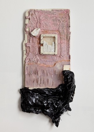 | Julie Schenkelberg | HEARSAY March 14 - April 20, 2013 Opening Reception: Thursday, March 14, 6 - 8 pm Artist Talk: Saturday, April 6, 1 pm Asya Geisberg Gallery is pleased to present Julie Schenkelberg's "Hearsay", an exhibition of sculpture and installation. "Hearsay" continues the artist's material investigations into the home's symbolism, the city's tall tales, and buried personal histories. Schenkelberg indulges in the paradoxical plenty of disuse and decrepitude. As with her first exhibition "Bad Blood", she takes inspiration from the Rust Belt's legacy of abandonment, conjuring houses in disrepair, defunct industries, and found shabby furniture imbued with years of memories, equally decaying and still alive. Schenkelberg invents new ways of disassembling and recombining the lived-in furniture with disembodied parts. Teal, yellow, and washed-out pink suggest the Art Deco palette that covered Cleveland in its prime, while shards of white marble echo the trickle-down luxury of middle-class bathrooms from that era. While the claustrophobic "Bad Blood" took over the gallery space, "Hearsay" shows a shift in Schenkelberg's practice towards a stripped down and concentrated density. Her current work traps tension, as entropic elements are pulled together in a small entity. Half-buried shards jut out, and mummified objects struggle. Schenkelberg combines broken-down markers of home - doors and windows, chair legs and dresser tops, and their undercarriage- nails, wire, plaster - constantly asking the viewer to shift scale. Within the recontextualized debris, the work exhibits a macabre aesthetic of hardened sediment seeping through the cracks, drilled holes, and repetitive gashes. Intentionally dirty and primitive, raw and complex, layers of rot are scraped away to reveal the original unsullied surface. Soft and feminine material such as silk is hardened, preserved in resin, effectively trapped and prevented from movement. Broken cups and dishes, familiar tropes of the artist's work, hint at a dysfunctional dainty aesthetic, while cement and plaster connote heft and strength. In the gallery's central installation, a Miss Havisham mansion transforms into piles of wood or a shanty of rusty metal. Marble chunks appear as rubble around black stair spindles rising out of the pile, tied with draping black strips of silk. Furniture is severed, splintered, and recombined almost beyond recognition. The conflict of prescribed gender roles expresses itself in material juxtapositions and fraught relationships of rusty nails and flimsy cloth trying to contain ungainly parts in vain. Schenkelberg's oeuvre reinterprets domesticity as a contemporary position, while plunging into the meaning of decay, towards a reinvention of common material's everlasting fascination and depth. Julie Schenkelberg lives and works in Brooklyn, NY. Schenkelberg received a BA in art history at the College of Wooster, and an MFA at the School of Visual Arts, NY, with additional studies at SAIC at Oxbow, MI, Pont Aven School of Contemporary Art, France, and the Institute of European Studies, Vienna. She has been included in exhibitions in New York, Chicago, and Ohio, and has an upcoming exhibition at the Sculpture Center in Cleveland, Ohio. She was awarded a residency at the Bemis Center for Contemporary Arts and has been named one of the "30 Artists to Watch in 2012" by NY Arts Magazine. | ||||