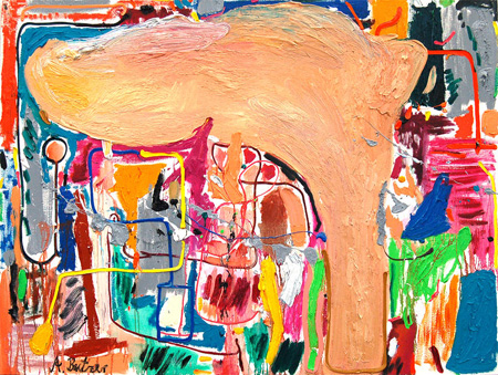 | "Andr� Butzer" Solo exhibition of Andr� Butzer CARBON 12 Gallery, Dubai March 14th -April 20th 2011 Carbon 12, in association with the prestigious Max Hetzler gallery, proudly presents the art of Andr� Butzer in his first major solo exhibition in the Middle East. Potato Chips, Coke and Medicine. Fanta and Sprite, long-life milk, Micky and Donald. At first glance Butzer's exhibition titles have a distinct pop feeling, a certain lightness. Works named �Blue Smurfs�, �Entombment of Winnie the Pooh� or �Favorite Painting of Paul Cezanne� suggest absurd and conceptual, even grotesque directions. But it is much more than that: �Science-Fiction Expressionism�, as Butzer himself calls his unique, demanding style. The founder of the legendary art academy �Isotrop� and co-editor of the magazine of the same name doesn�t seem to be concerned with genres, classifications or trends. His paintings oscillate between abstraction and figuration, enchanted with bright colors and executed with expressive brush strokes. Shapes are morphing and characters are born, a whole universe of signs and signifiers in constant flux, referencing American and German history, politics and economy, pop culture and the entertainment industry, but always focusing on the development of a personal vocabulary and grammar. Or in Butzer's own words: �I am not a painter, but an artist!�. | ||||