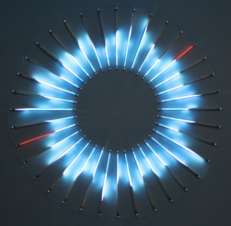 James Clar, "One minute dreamstate (1.40 AM)", 2012 Fluorescent lights & filters 220 cm diameter | |||