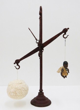 Miguel Palma, Black Cotton, 2012, Iron scale, pin, ceramic doll, cotton 72 x 48 x 23 cm | |||