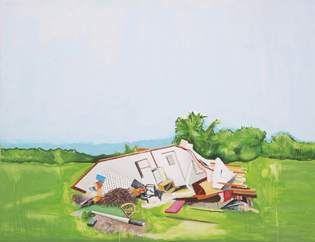 | Guided tour by the artist on Saturday, November 24 at 5 pm Opening Hours: Monday-Wednesday 12 am-5 pm, Thursday-Friday 12 am-8 pm, Saturday 3-8 pm and by appointment. The gallery will be open by appointment only from December 24, 2007 until January 5, 2008. It will re-open on January 7, 2008. Maria Condado is an artist whose work is unmistakeable in the exhibition entitled Promised Land. Exhibited throughout the gallery, the nine oil-on-canvases are part of a clear interest in the relationship between nature and construction. Avoiding the confusing overall image that contemporary reality produces with all its actors, there is the concern to isolate elements (excluding a concrete human presence) and concentrate a new perception about its singularity. The constructions or structures are signs of civilisation wrapped in a notion of time that is not only evolutionary but also something that appeals to a transversal perspective; to the eventuality of nature prepared to move forward, expectant of its own possibilities of renewal are added the obsolete image of the functional structures of a bygone age. Each canvas focuses on a certain group where the ambivalence of temporal and geographical facts positions the spectator before the irony and the inevitability of finding them. This reflection has become more accentuated in the artist�s work since 2005. The exploration of landscapes, where the abandoning of structures limited by nature constitutes the core of this study, based on a twin perspective: the canvas almost always reveals the choice of a scenario that is neither wholly urban nor wholly rural, it hovers on the edge of both and, simultaneously, exists only in that lack of recognition. On the one hand, the unreal nature of the places questions its existence, but on the other, in the field of our perception, something persists in the memory of a common notion of the unreal. Via the creation of doubt and the unpredictability of events a battle of forces is created, where the human and the natural � the first being shown by its own decadence and the second by its own progress � finally find the opportunity to coexist at a time that, nevertheless, is also one of proclaimed mutability. In terms of the formal process, Maria Condado makes the dripping paint a significant element of her pictorial work, which also gives, alongside the titles of the pieces, certain clues for the observation and understanding of the conceptual dynamic. Maria Condado (Lisbon, 1981) graduated in painting from Lisbon School of Fine Arts (FBAUL) in 2004. Promised Land is her first solo exhibition at a Lisbon gallery. In 2006, she had her first solo exhibition at Lugar Comum, in Oeiras. Among other collective exhibitions (Alkantara Festival, 2006; Iniciativa X -Artecontempo, 2005), she was shortlisted for the Anteciparte Prize in 2006 (Lisbon) and for the Ariane de Rothschild Painting Prize in 2005 (Lisbon). She is currently exhibiting some of her work at the MCO Arte Contempor�nea in Porto and at the Jeune Cr�ation Europ�enne, a travelling Contemporary Art Biennial in France, Lithuania, Austria, Italy, Spain and Portugal (Amarante in 2009). Her work is included in the PLMJ Foundation collection in Lisbon and in private collections in Portugal. Rita Santos, October 2007 Caroline Pag�s Gallery | ||||